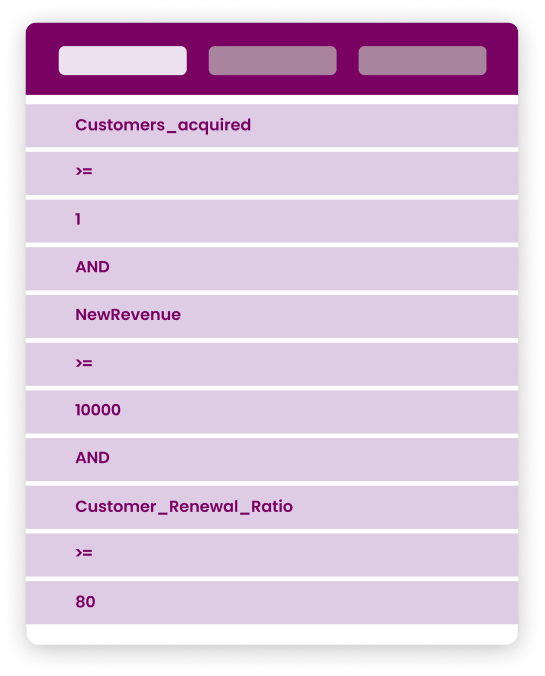 Configure varied target achievement tiers and diverse KPIs using a no-code criteria configurator for granular control over payout program constructs.