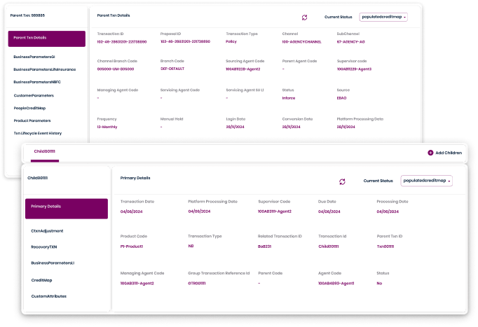 Track linked transactions to ensure accurate roll-up calculations, overrides, and performance attribution across the sales hierarchy.